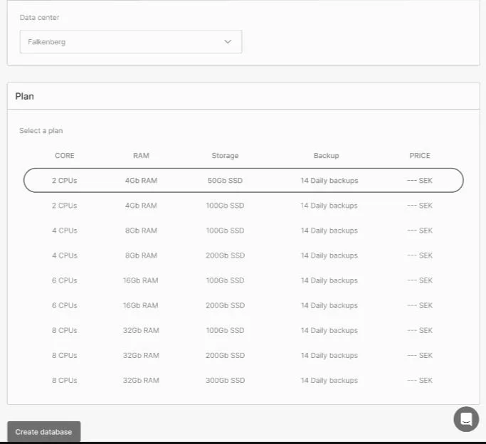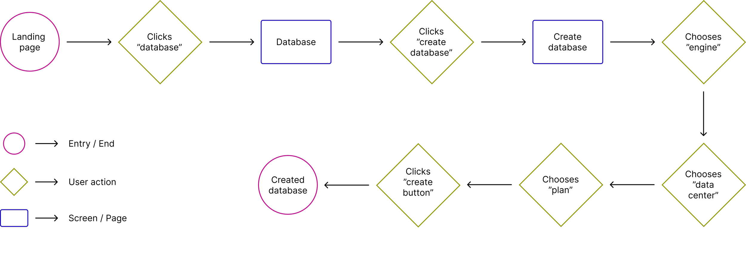 Through studying their DbaaS product flow, I put together the most essential features shared by their two top competitors: naming the database instance, choosing database engine and data center, and pricing plans.