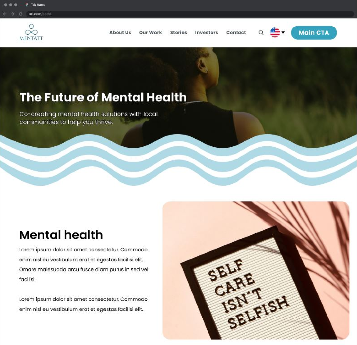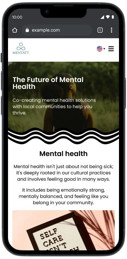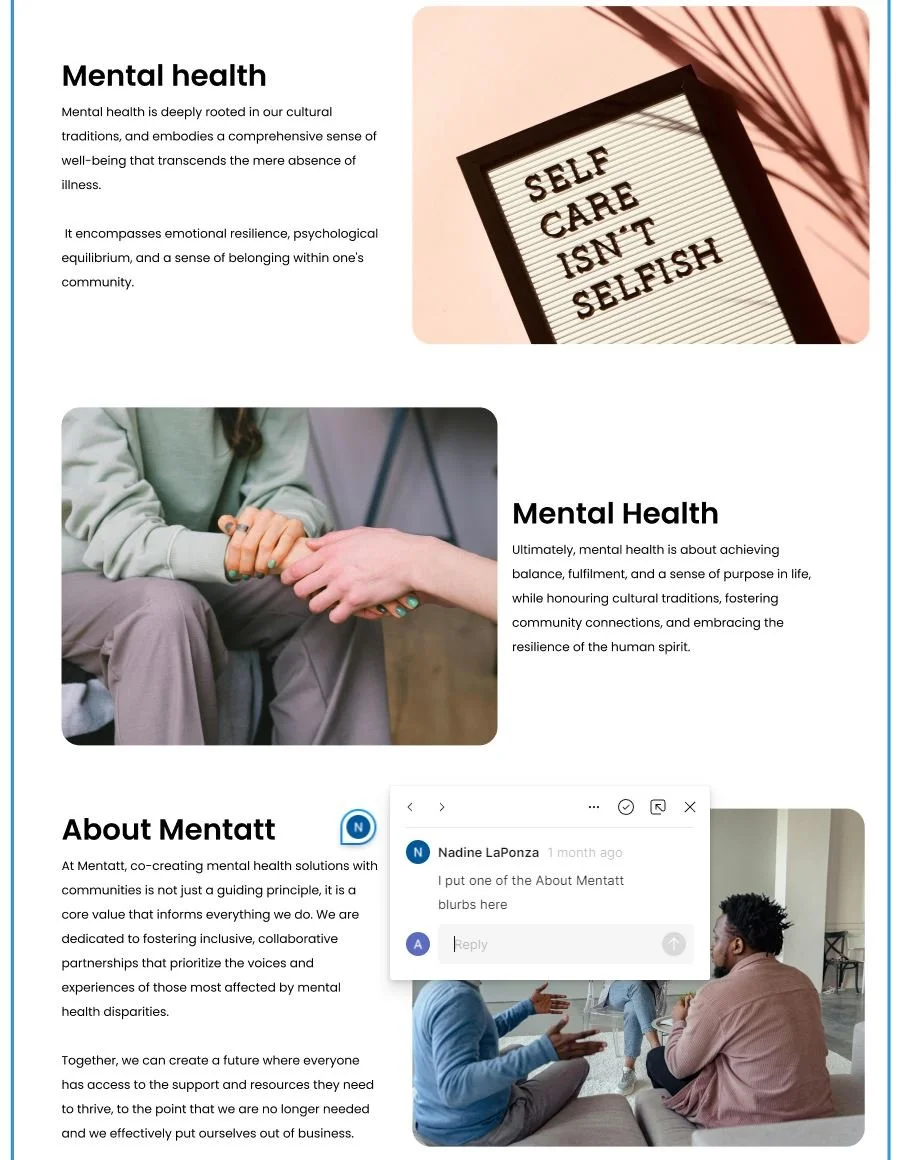 Pushing the “About Mentatt” further down the page, because our testing showed that it was necessary to first introduce visitors to what mental health is before who Mentatt is.